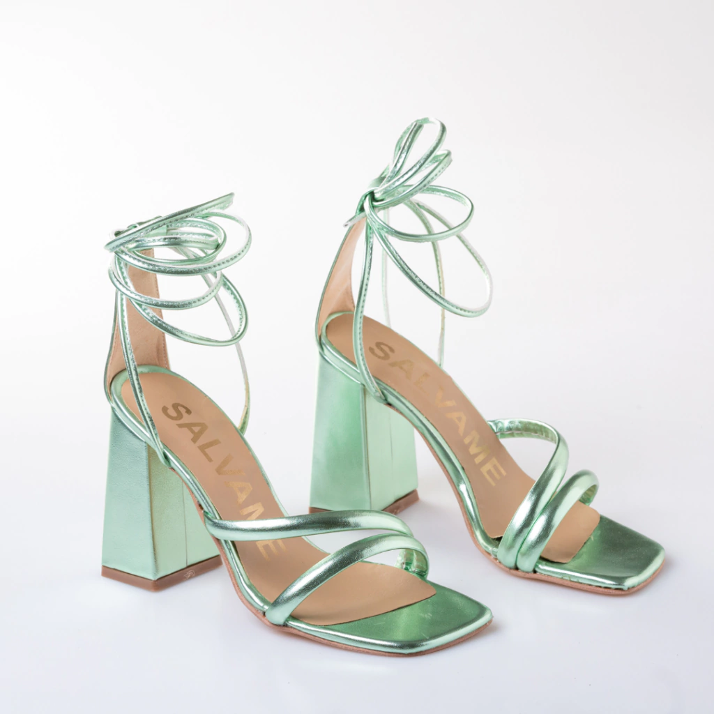 Sandalia tiras engrosadas con tacon de 9.5 cm y tiras para anudar